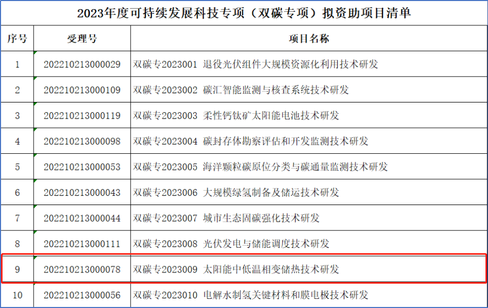 近日,深圳中建院建筑科技有限公司(以下簡稱“深圳中建院”)牽頭,聯(lián)合天津大學(xué)佐治亞理工深圳學(xué)院、深圳市愛能森科技有限公司申報的深圳市科技創(chuàng)新委員會2023年可持續(xù)發(fā)展科技專項(雙碳專項)項目——《太陽能中低溫相變儲熱技術(shù)研發(fā)》獲批立項。