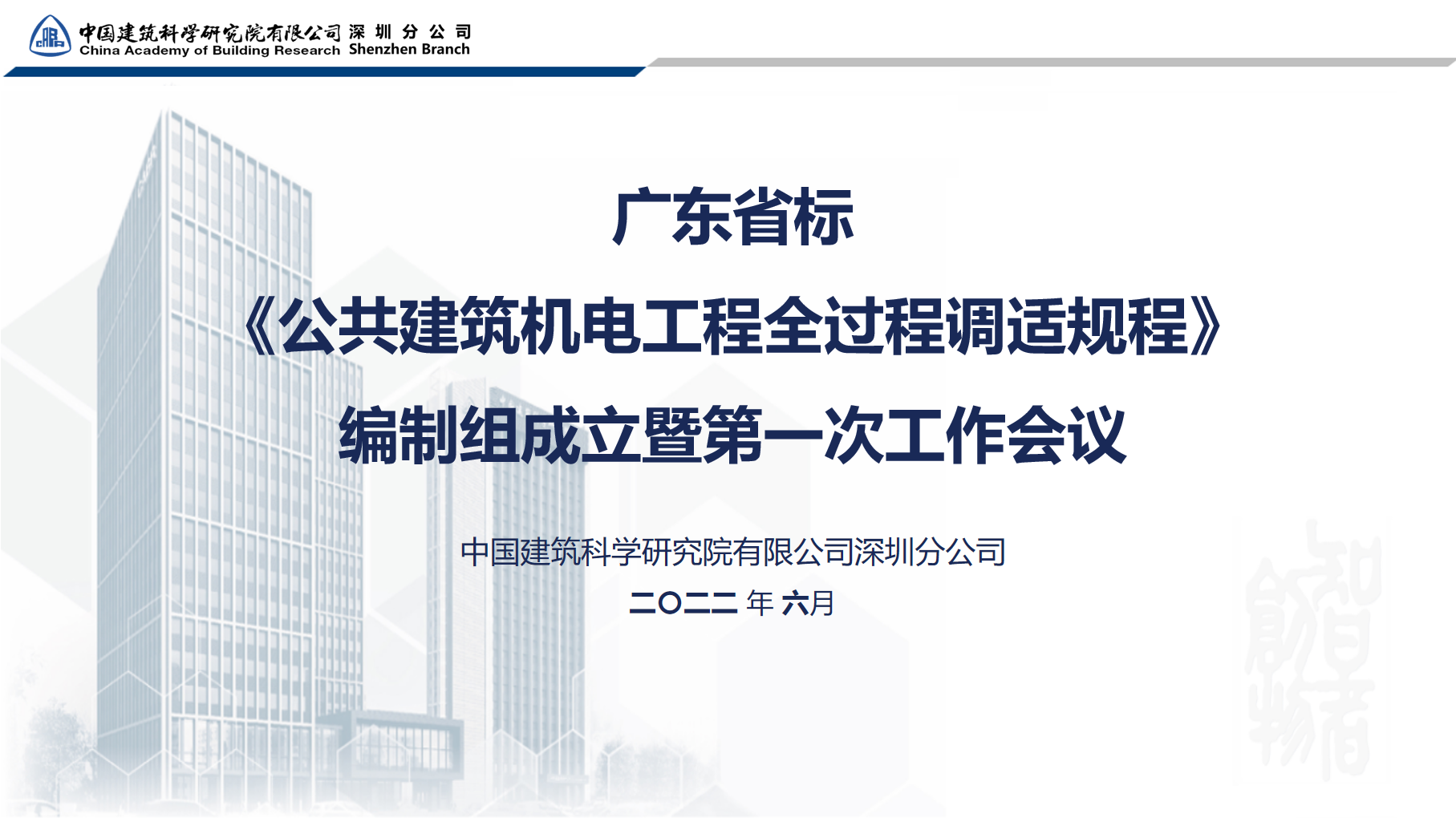 隨后,《調(diào)適規(guī)程》編制組召開了第一次工作會議。中國建研院深圳分公司對《調(diào)適規(guī)程》編制背景、工作基礎、大綱、分工和計劃等進行了詳細匯報,與會專家就上述內(nèi)容進行了廣泛深入的討論并達成一致意見。根據(jù)工作計劃,編制組預計于2022年10月完成征求意見稿編制,預計于2023年3月提交報批稿。